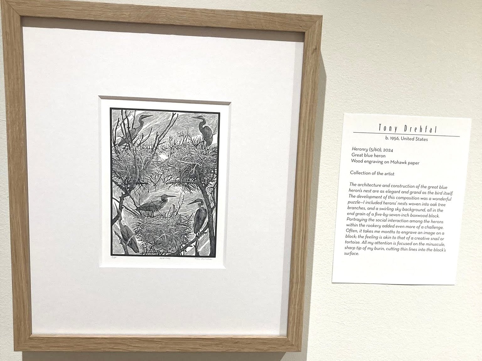 I had the wonderful honor to have my wood engraving “Heronry” selected for inclusion in the “Birds in Art Fifty” Exhibition at the Leigh Yawkey Woodson Art Museum, located in Wausau Wisconsin. For my first time entry in the annual showing, it was a good year to be selected, as the Museum was celebrating it’s 50th ”Birds in Art” Exhibition.
